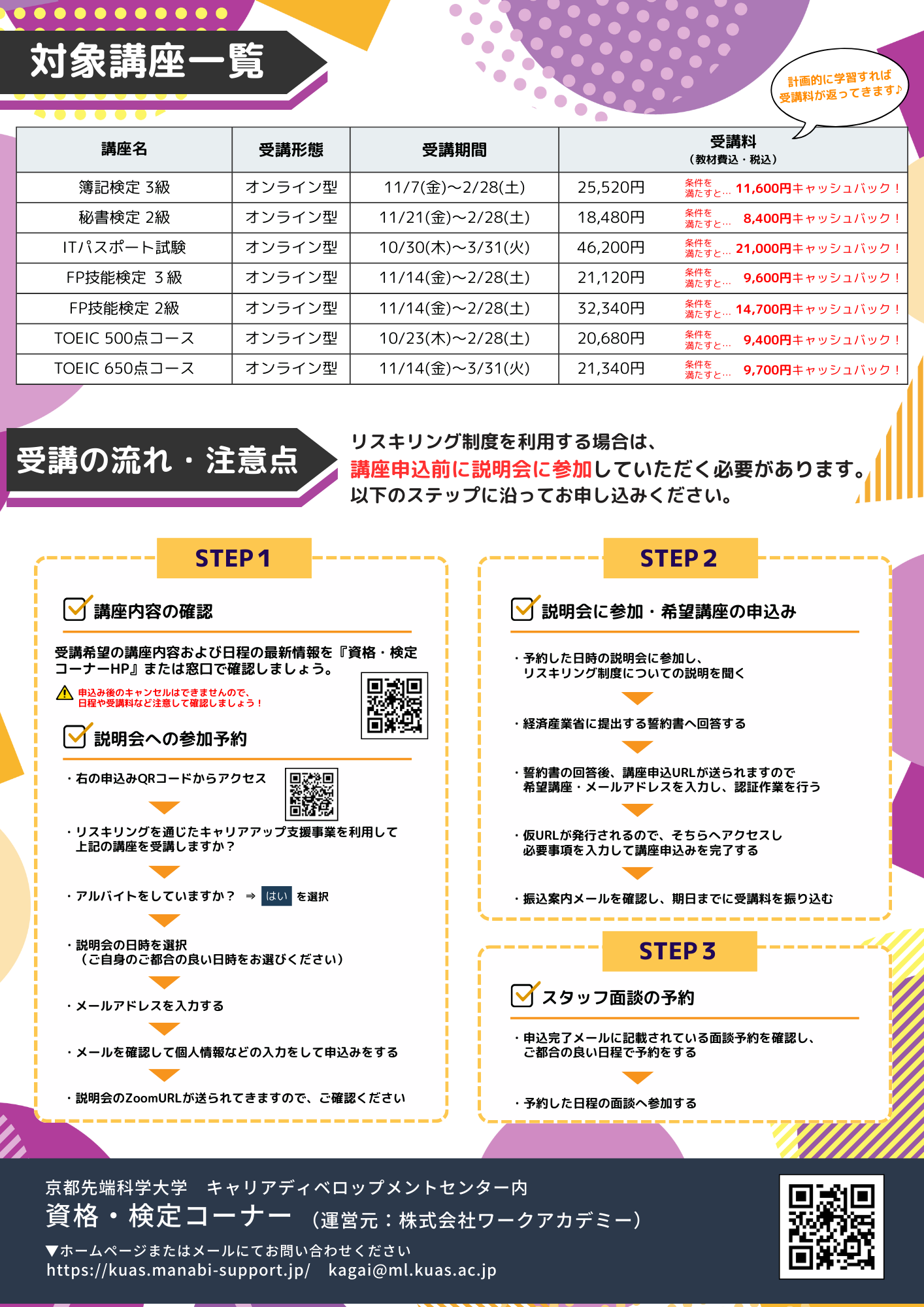 *各講座の学習開始日や、受講料等も記載しているのでお見逃しなく